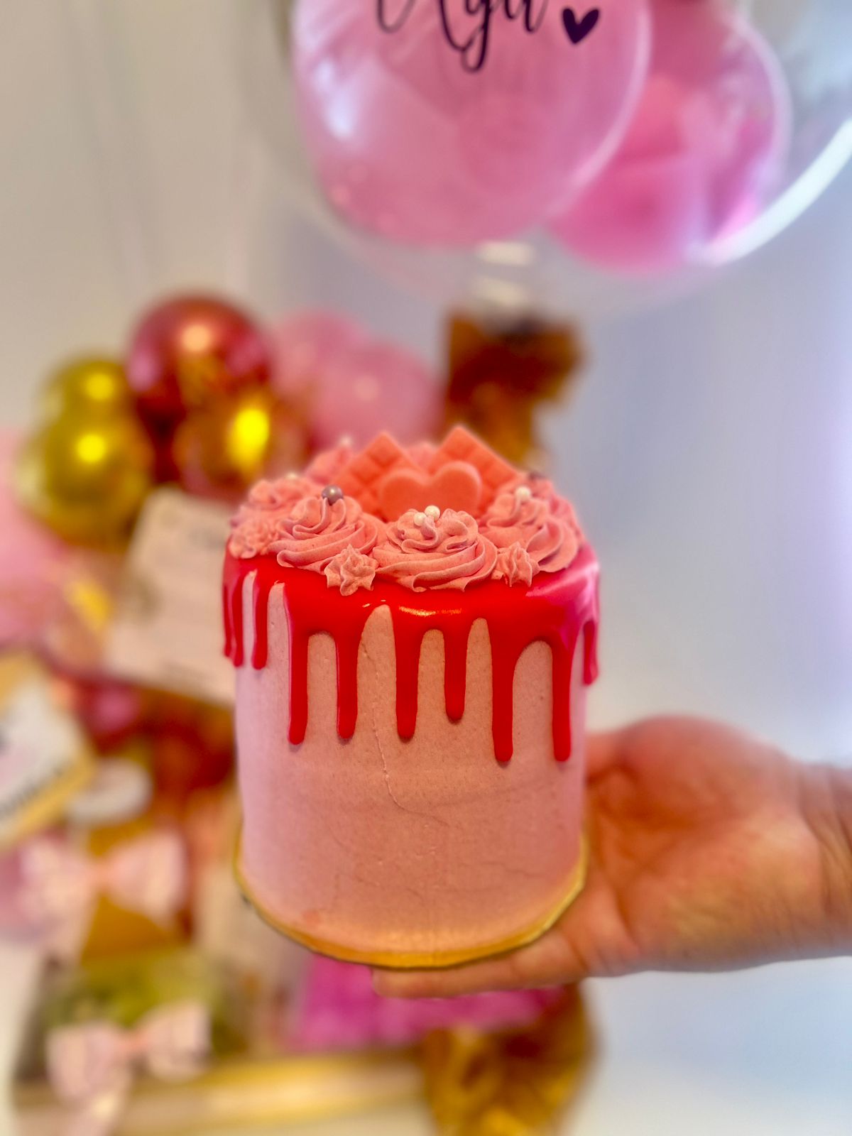- Pastel decorado en colores rosados y dorados, diseñado especialmente para la ocasión, perfecto para sorprender en su día.
